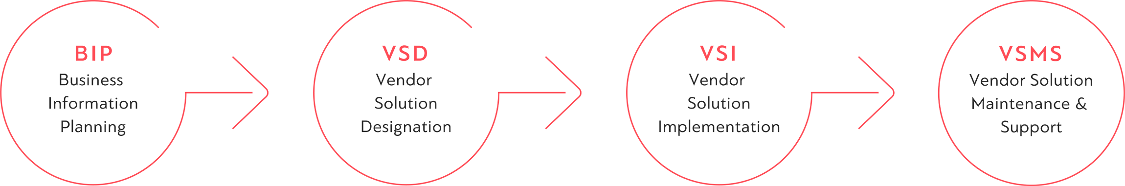 Die Methode unterteilt sich in vier Phasen. Zunächst ermitteln wir den Bedarf und suchen anhand dessen die optimal passenden IT-Lösungen für Sie aus. Anschließend integrieren wir die ausgewählten Produkte sorgfältig in Ihre Unternehmens-IT.